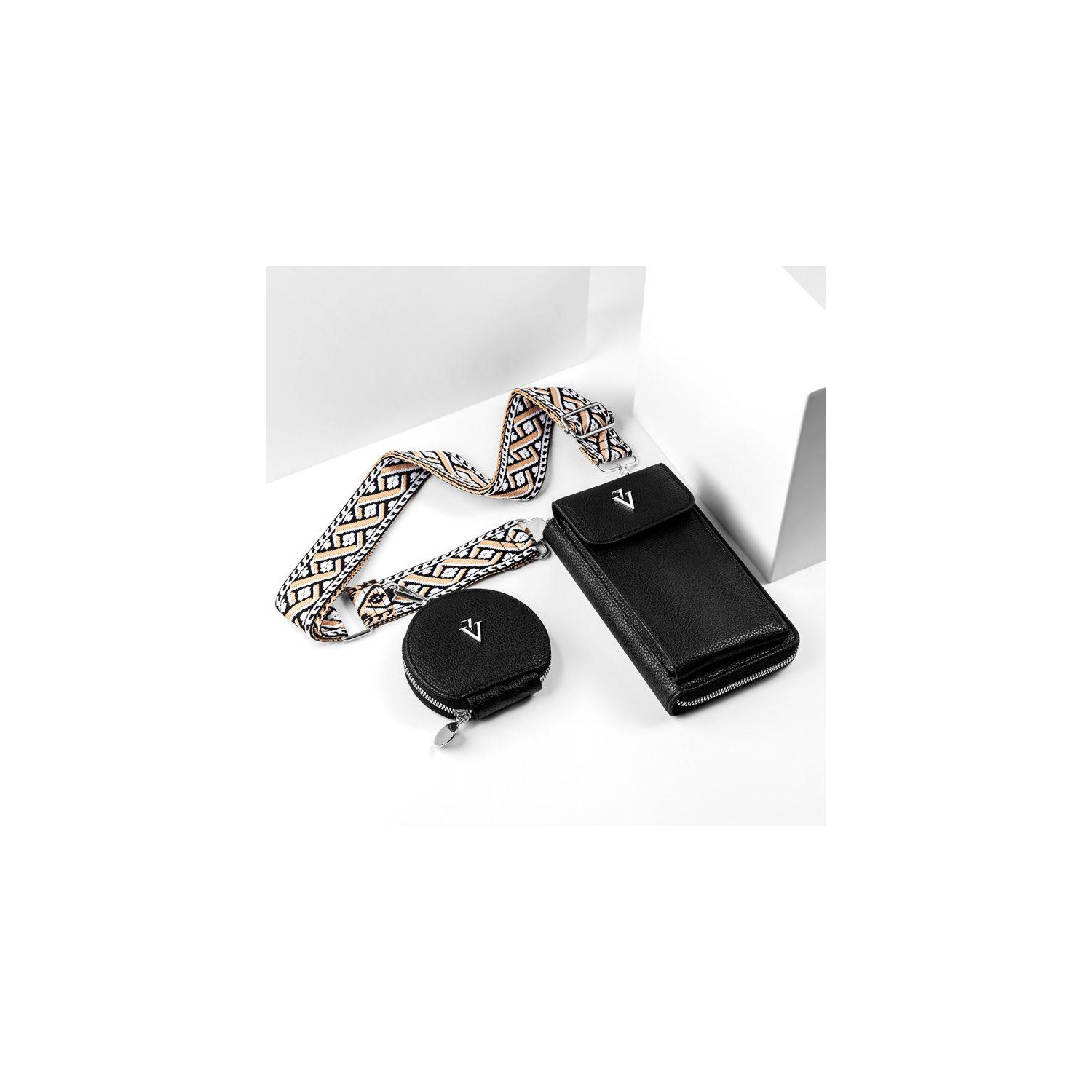Schwarz mit verstellbarem Schulterriemen im farbigen Muster